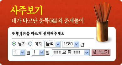 º»ÀÎÀÇ »çÁÖ »ý³â¿ùÀÏÀÇ ±â¿î, ¼º°Ý, ¿î¼¼Æ¯Â¡À» Ç®ÀÌÇÕ´Ï´Ù.